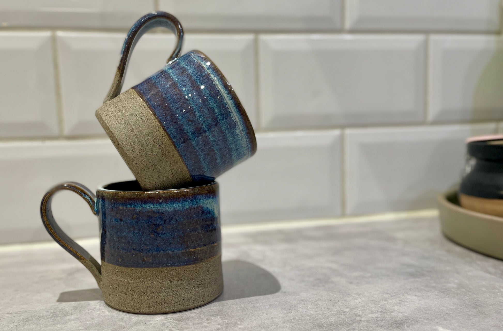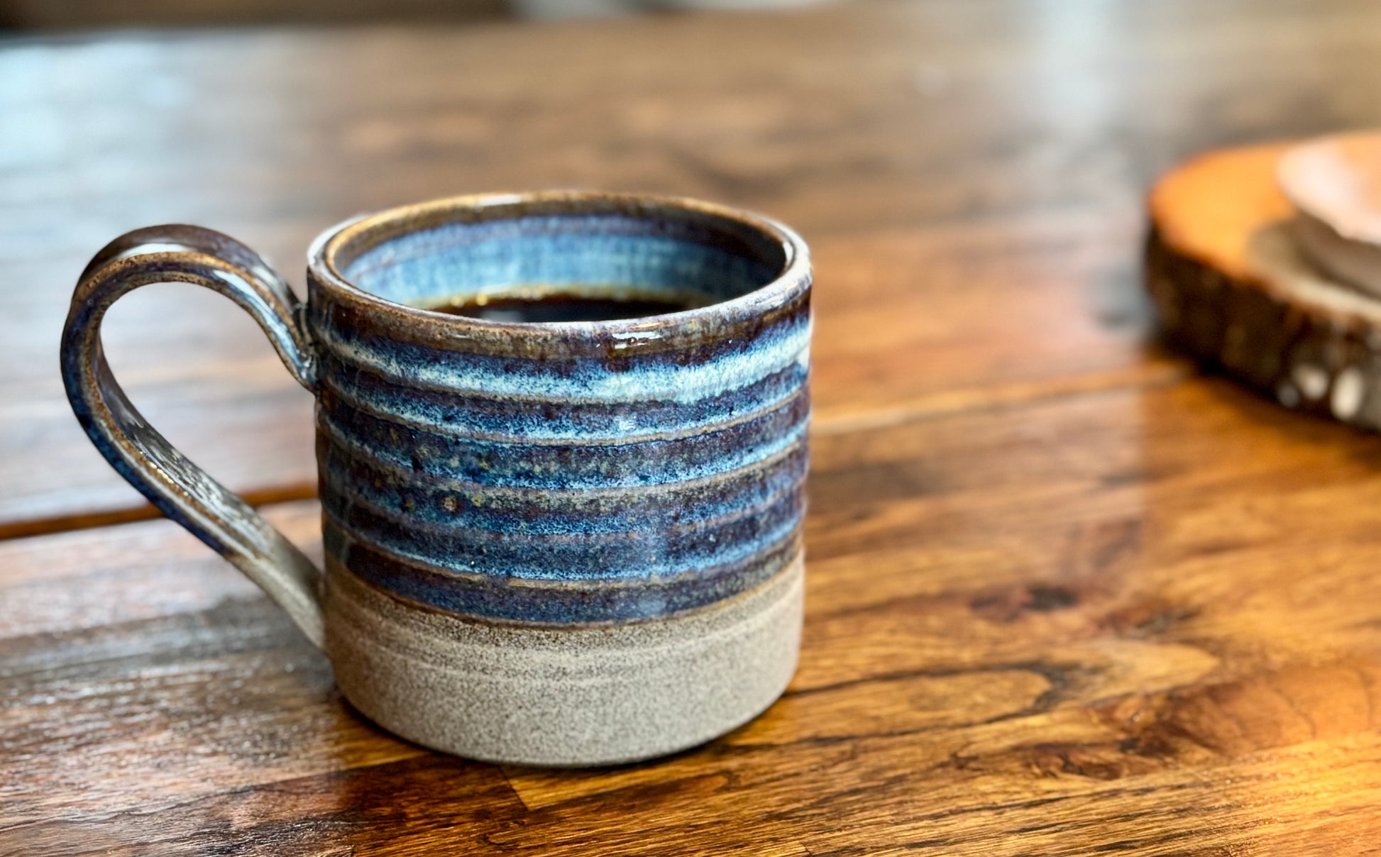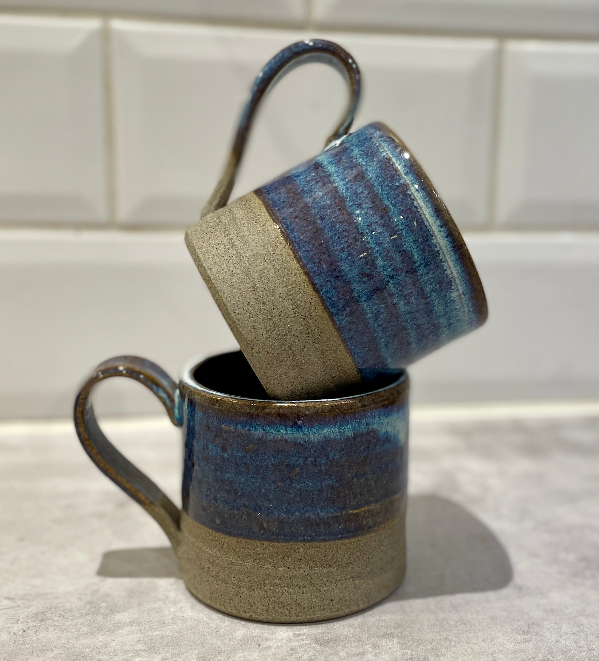 Delvis glaserad mugg i havsblått