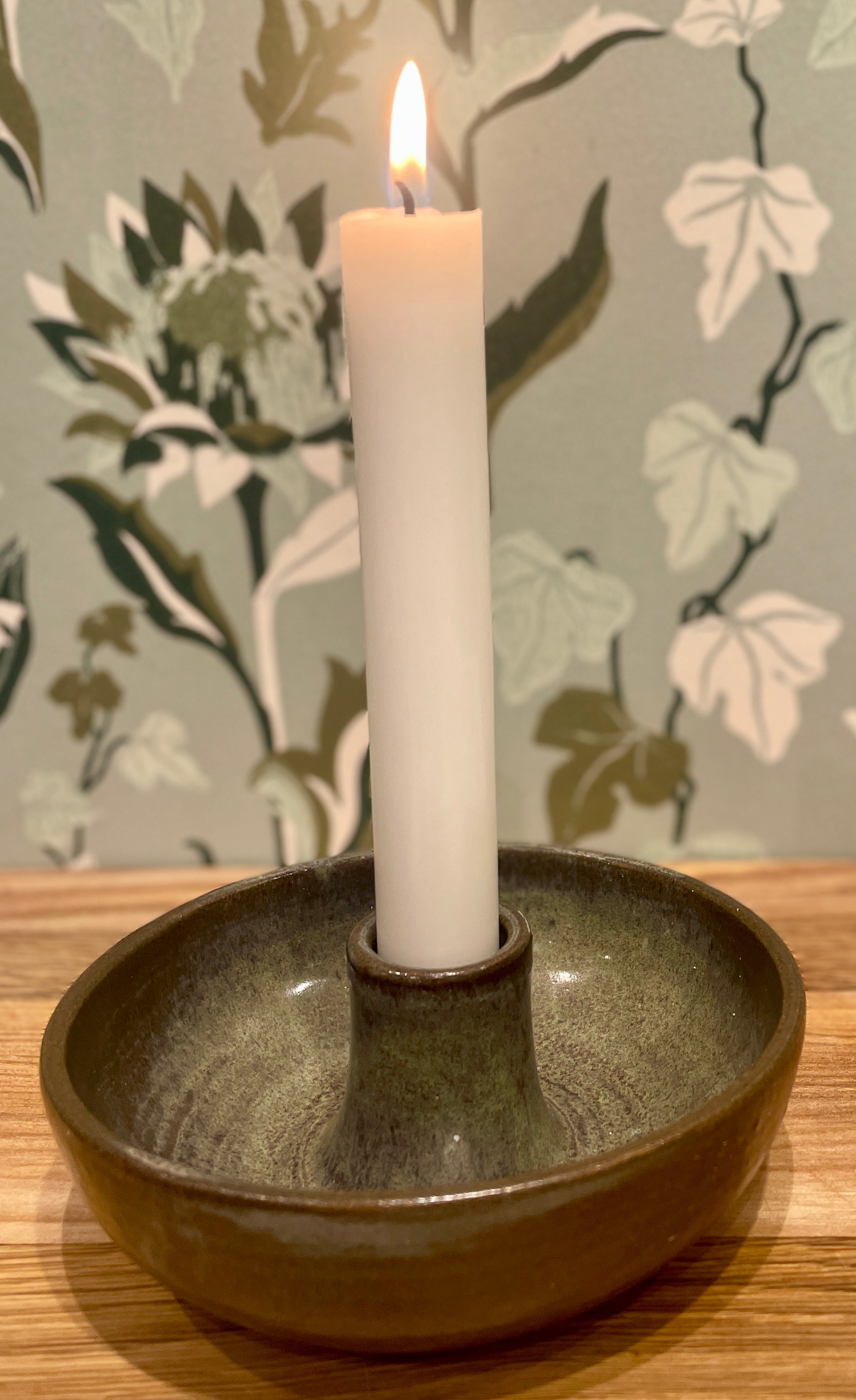 Ljusstake drejad i en granitgrå lera och försedd med en grå/blå glasyr även bryter lite i grönt under visst ljus.