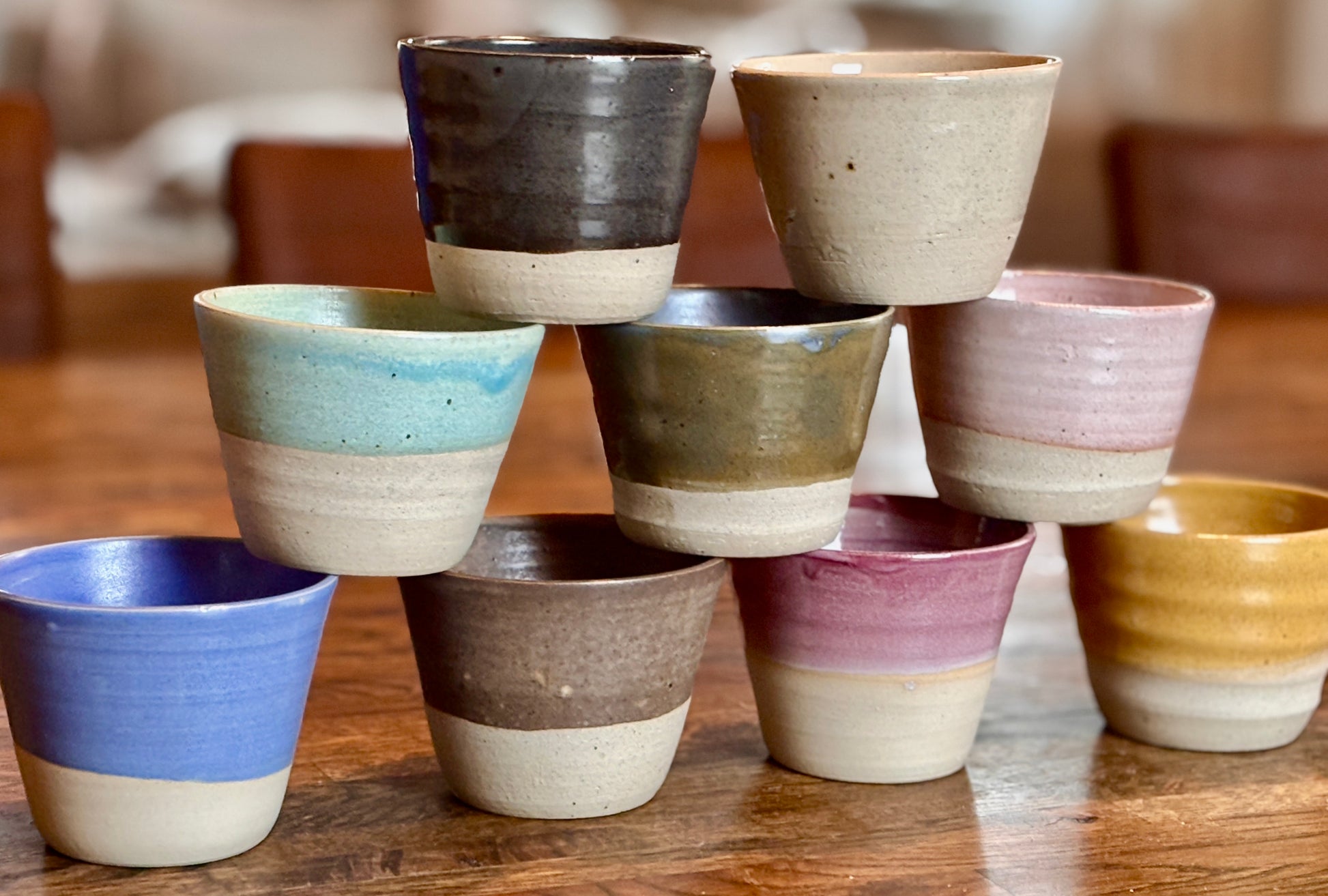 Den härligt mjuka beiga leran i de här muggarna gör sig bra i många olika kulörer. Oavsett om du föredrar att avnjuta din dryck i en rosa, gul eller kornblå mugg så kommer du få samma härliga känsla av den lena mjuka keramiska ytan under glasyren.